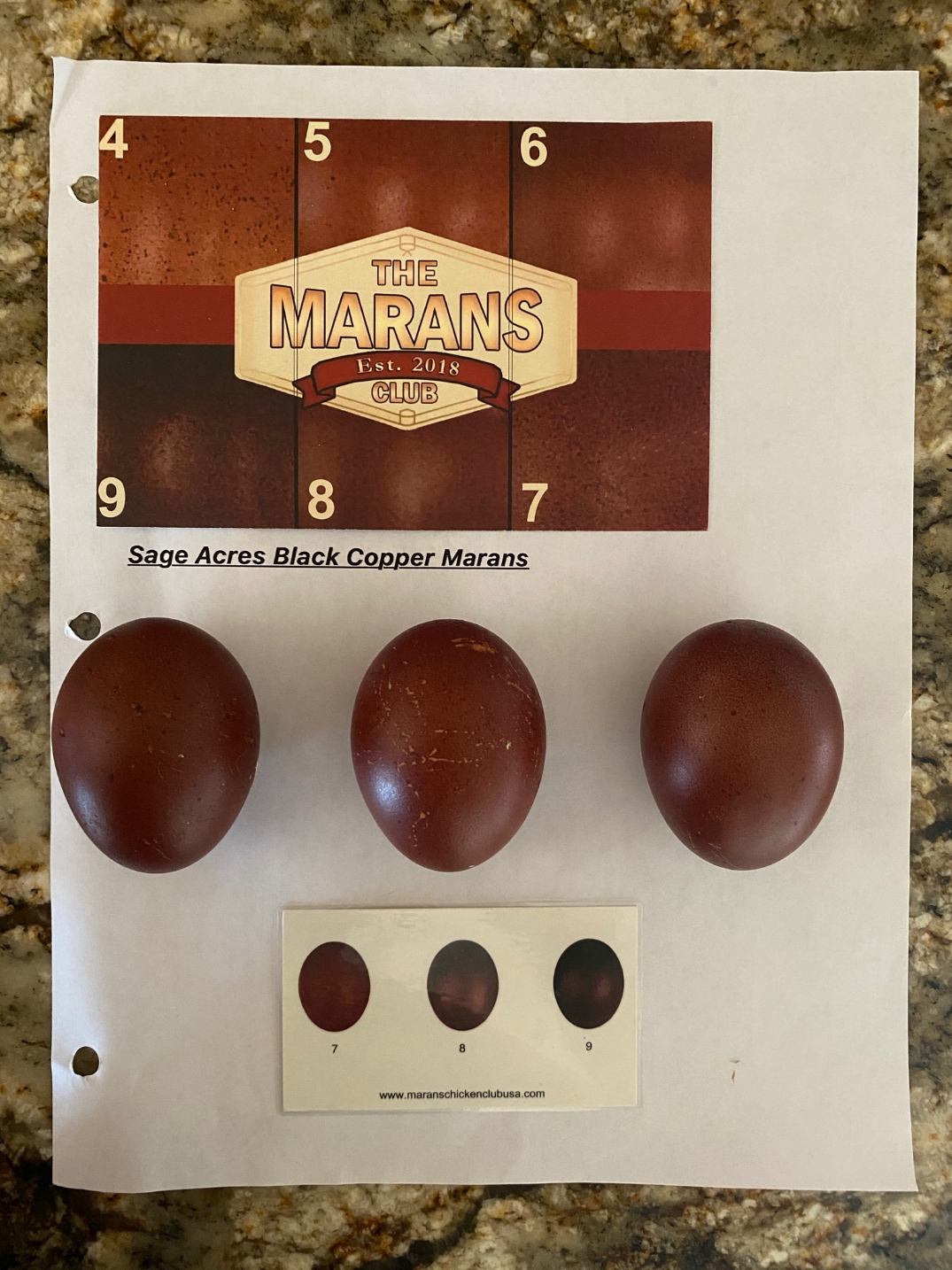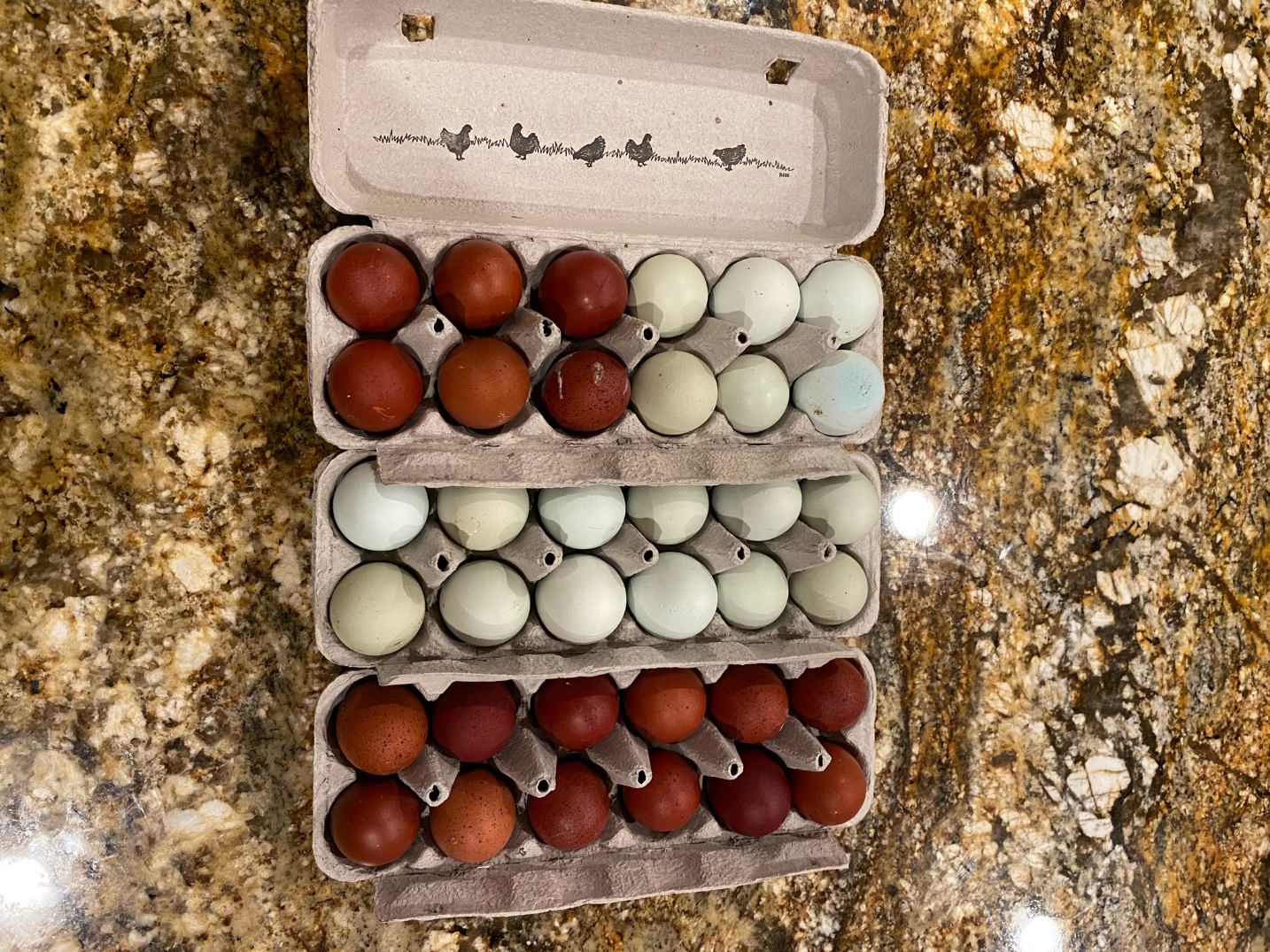 We are known for the darkness of our eggs and the beauty of the adult birds, I put a lot of care into pairings and breeding groups. I have breeding pens of birds only hatched from 9+ color carded eggs. With that said, not all eggs laid are 9+ color carded eggs. We normally see 6 -9's and the randomly dark speckled ones. no hen is the same, the darkness of the egg is dependent on the hema concentration of the hen. I am always breeding with the mindset to increase concentrations and use only my best birds. There is no color guarantee.